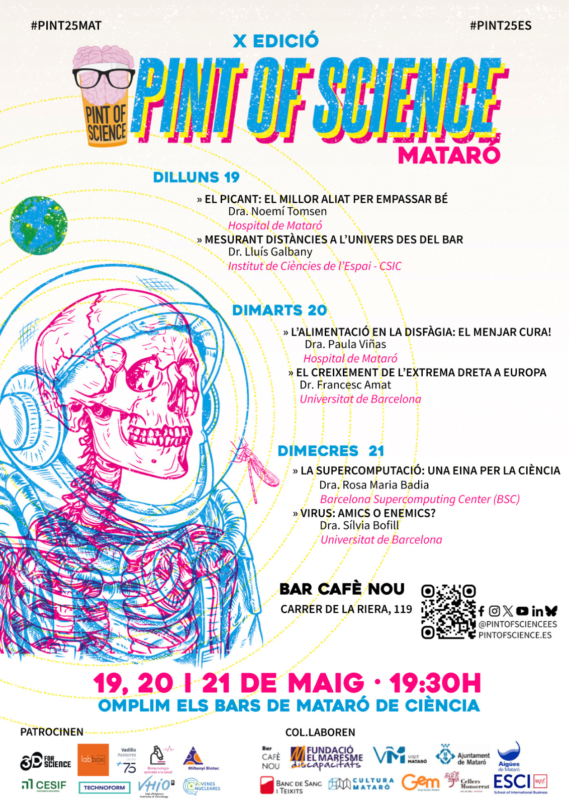 Totes les activitats començaran a les 19.30h i l’entrada és gratuïta fins a completar l’aforament. Consulta tota la informació i el programa complet a la web de Pint of Science Mataró i al perfil d’Instagram de Els Set-ciències de Mataró!